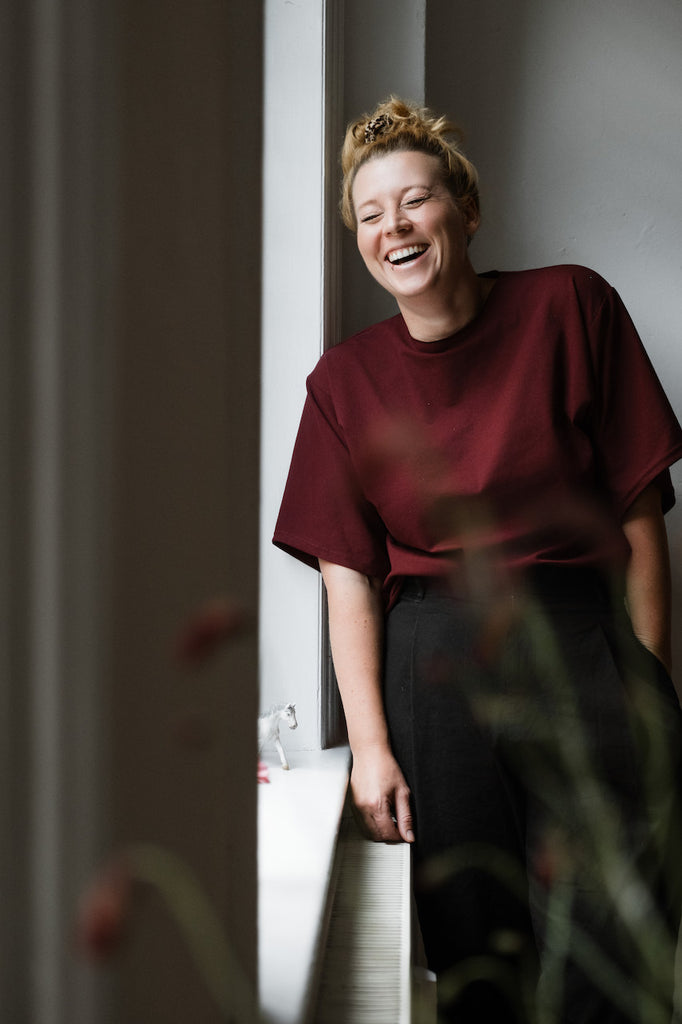 Unser Shirt BE hat einen Boxy Cut und weite Ärmel, die bis zum Ellenbogen reichen. Es lässt sich wunderbar zu Hosen und Röcken stylen und verleiht Deinem Outfit einen modischen Look.